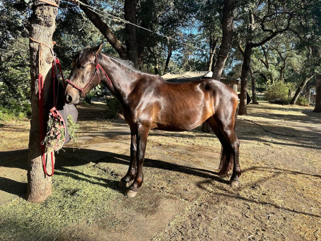 JB, lovingly known as June Bug, is a 19-year-old bay Quarter Horse mare who has spent her entire life as a pasture horse on the ranch where she was born. Until the day she came to us with Fritz, she had never been on a trailer, making her journey to the ranch a huge and brave first step into a brand-new world.